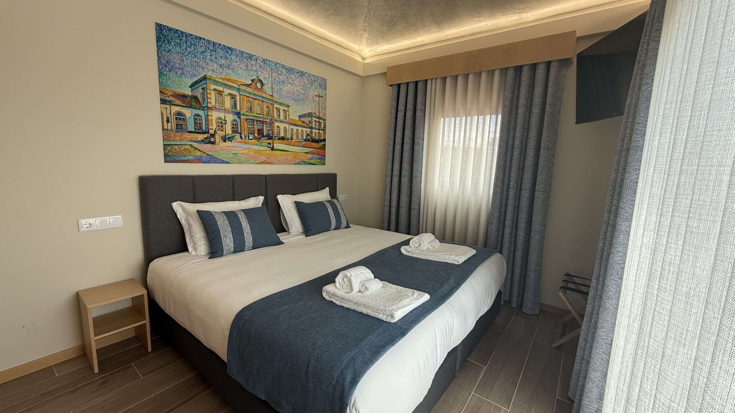 Quarto situado no último piso (2º andar) e acessível apenas por escadas, com uma área de 16 m². Dispõe de cama de casal king size, secretária, cofre, ar condicionado individual, WC privativo, Smart TV e cortinas blackouts. Este quarto destaca-se pelo amplo terraço, equipado com mobiliário exterior, onde poderá desfrutar de vistas panorâmicas sobre a cidade.